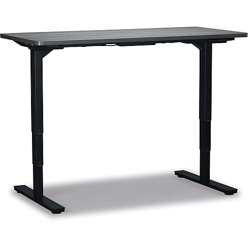 Staples Electric Sit Stand Adjustable Desk Grey Woodgrain Staples